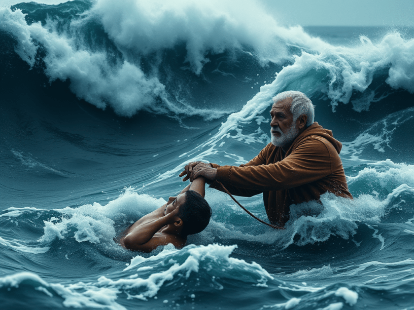 The aged man continued with his story, “grabbing a rescue line, the father had to make the most excruciating decision of his life: To which boy would he throw the other end of the life line? He only had seconds to make the decision. The father knew that his son had a firm testimony of Christ, and he also knew that his son’s friend did not. The agony of his decision could not be matched by the torrent of waves.
