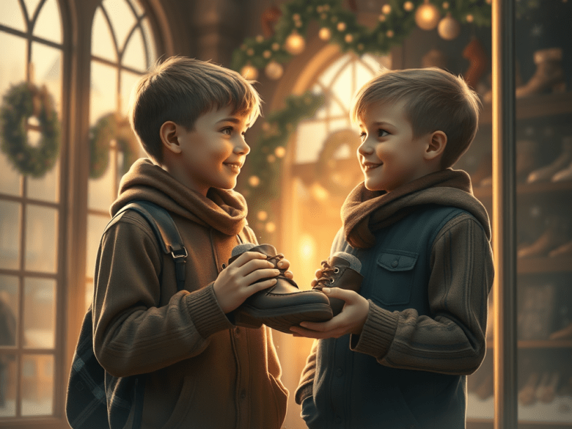 (Summary: “In ‘Pattern of Love’ by Jack Smith, two young boys, Timmy and Billy, taught the true essence of Christmas. During a community shopping tour, the boys chose to buy their unemployed father a pair of work shoes, drawing a pattern of his foot while he slept. Despite limited funds, a kind shoe store clerk offered a special discount, allowing the boys to purchase the shoes and gifts for their family. Their selflessness and love touched not only their father but also the narrator, emphasizing the spirit of giving and gratitude during the holiday season.”)