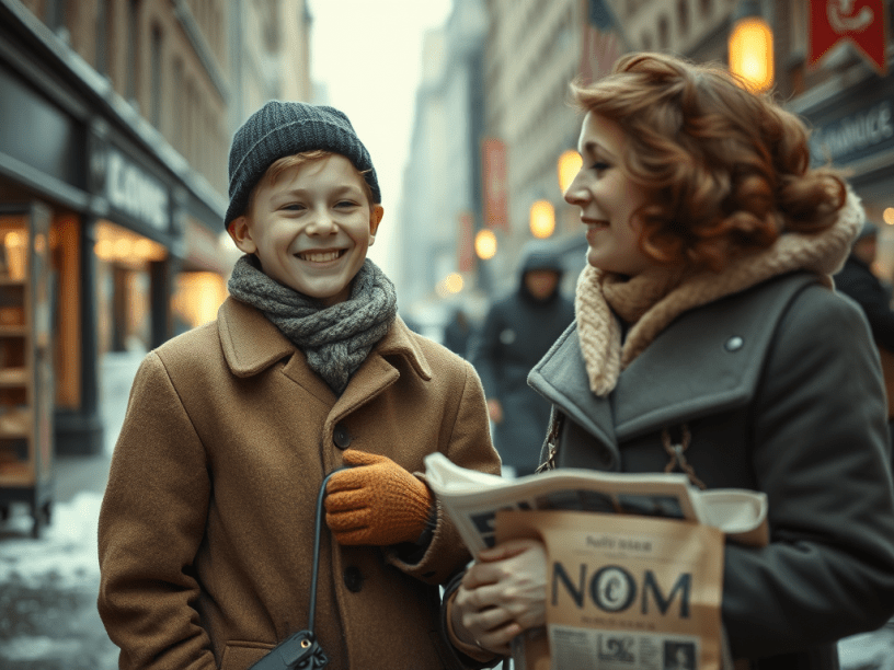 A smile lightened his cold little face as he took her hand. She led him to a large department store, where she had him completely outfitted from head to toe with sturdy winter clothing.