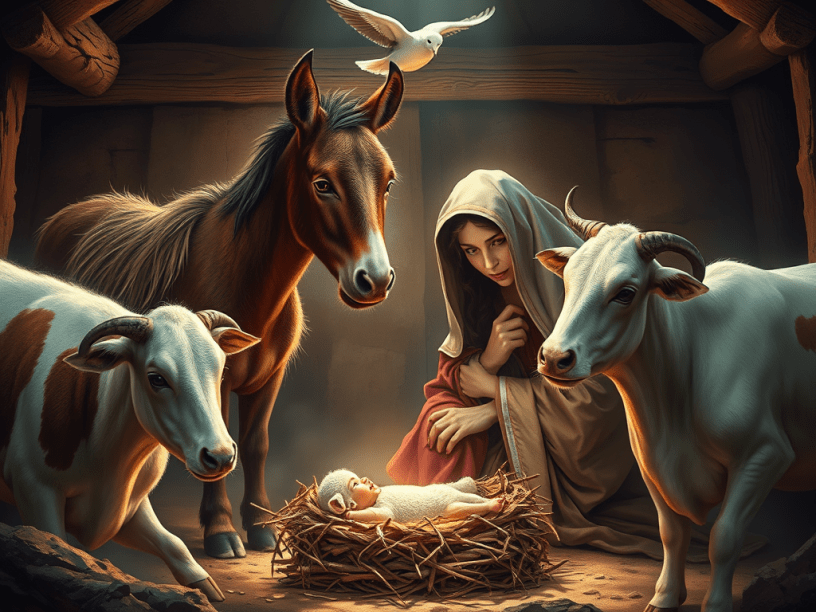 (Summary: In this twelfth-century carol, the animals present at Jesus’ birth express their roles and contributions. The donkey carried Mary, the cow offered its manger, the sheep provided wool for a blanket, and the dove sang to comfort the Baby. They joyfully recount the gifts they gave to Immanuel.)
