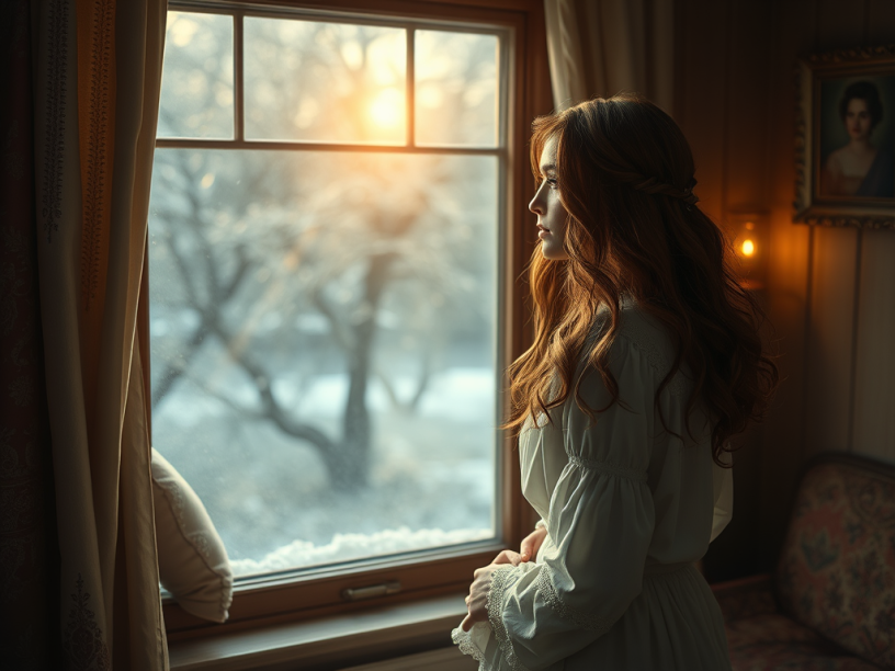 Suddenly she whirled from the window and stood before the looking glass. Rapidly she pulled down her hair and let it fall into its full length.