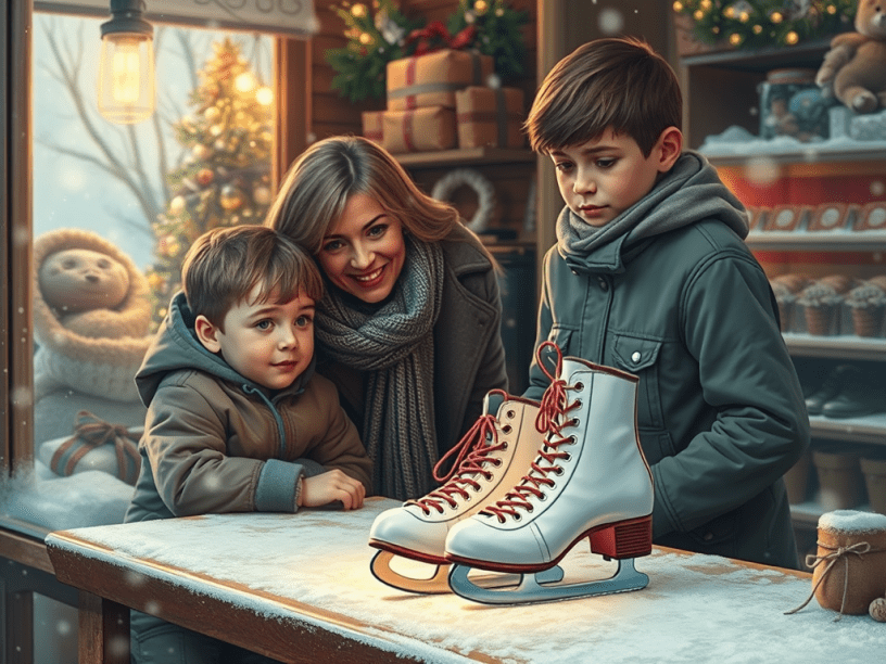 (Summary: On Christmas Day, a store owner follows a strange urge to open her shop despite the cold. She finds two needy boys waiting for her, wanting to buy skates for the younger brother. Miraculously, a pair of skates fits perfectly, and their gratitude fills her heart with the true spirit of Christmas.)