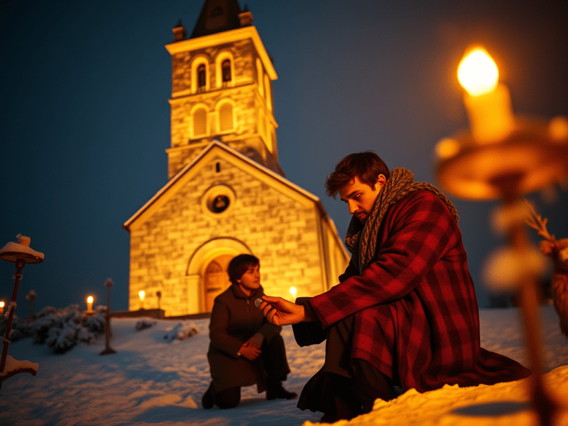 (Summary:  In “Why the Chimes Rang” by Raymond MacDonald Alden, a magical church in a distant city houses ancient Christmas bells that ring only for the most meaningful gift to the Baby Jesus. On a freezing Christmas Eve, Pedro and his younger brother set out to witness the church’s wondrous service. However, when they encounter a dying woman, Pedro stays to help her, sacrificing his chance to attend the service. Meanwhile, his brother, guided by Pedro’s sacrificial spirit, presents a simple silver coin as his gift, causing the bells to chime in celebration of selfless love and generosity.)
